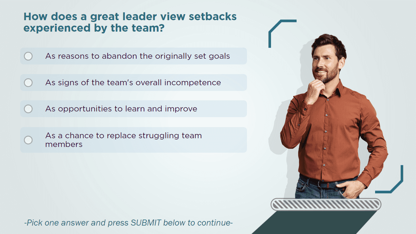 The client wanted a fresh, modern course that focused on people, perfectly aligned with the course name, "Level Up Your Leaders." The project naturally called for a gamified approach, which I brought to life through creative graphics and interactivity. I was handed a script and storyboard with minimal notes and was tasked with storyboarding the content from scratch and building the course, incorporating gamified elements to make the learning experience dynamic and engaging.
